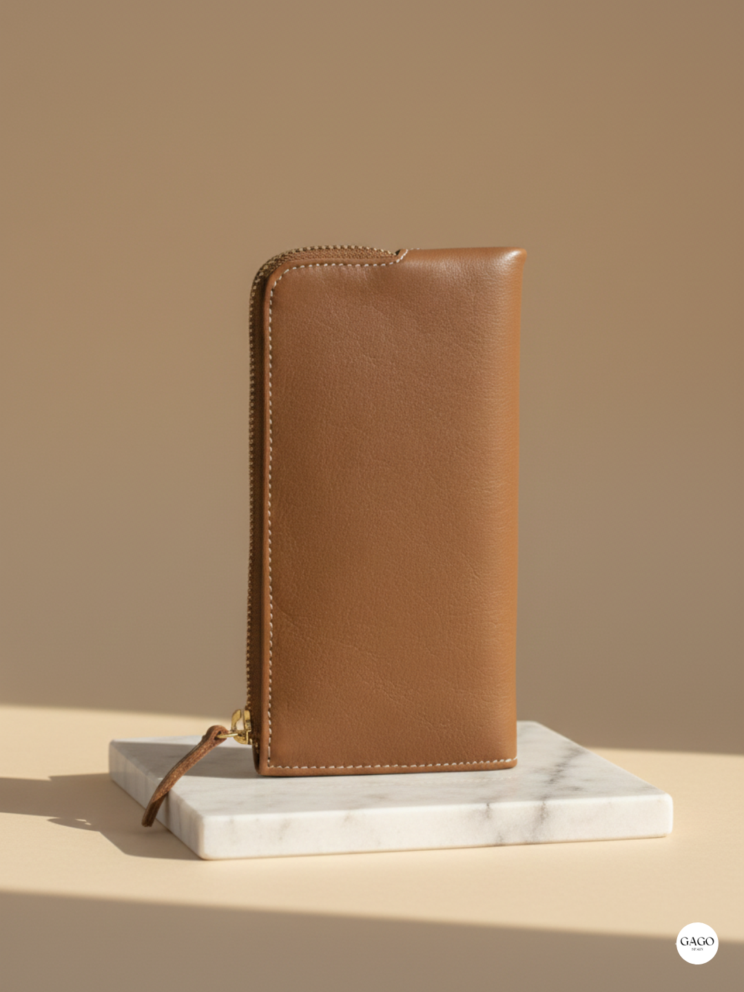 Fondo exterior de piel premium de ternera color cuero.
