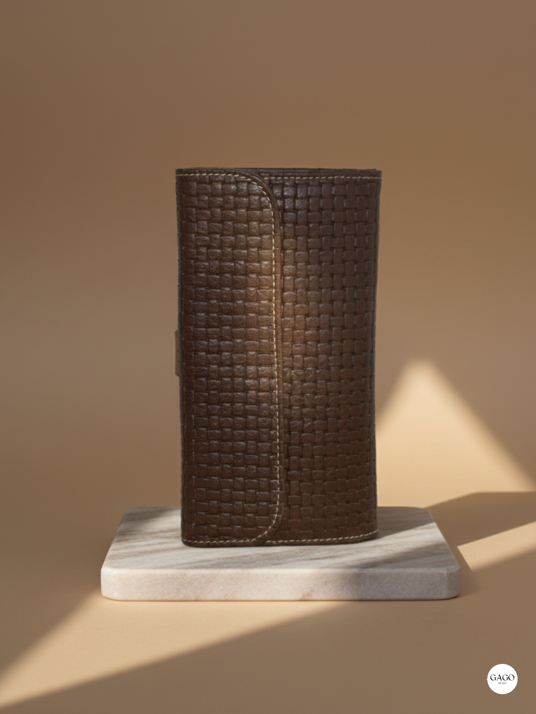 Fondo exterior de piel premium de ternera color marrón.